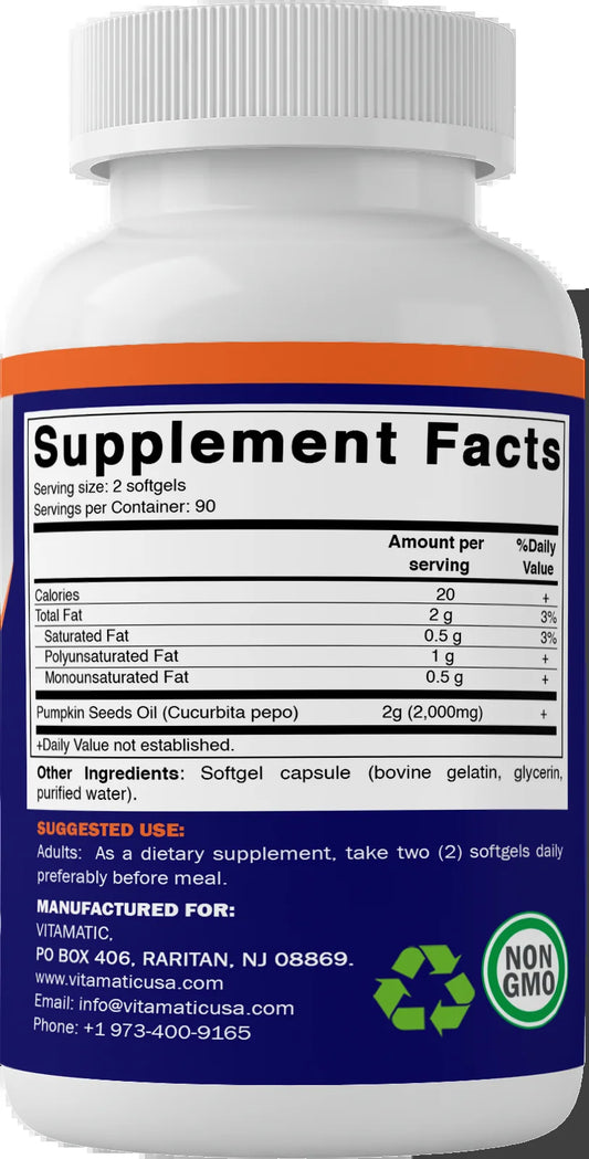 2 Pack - Pumpkin Seed Oil 2000Mg Softgel Capsules per Serving - 180 Softgels - (1000 Mg per Softgels) (Total 360 Softgels)