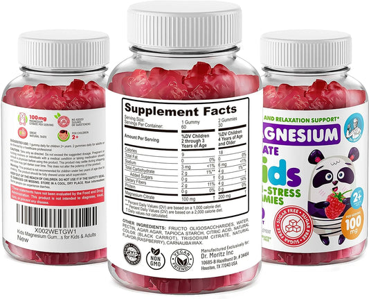 Kids Magnesium Gummies Sugar-Free Supplement for Children, Sugar-Free Magnesium Chews for Kids & Adults (120 Count (Pack of 2))