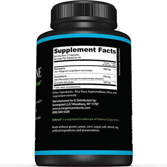 Premium Pterostilbene Supplement - Pterostilbene with Resveratrol & Quercetin - Supports Healthy Aging & Cardiovascular Health - Natural Source Pterostilbene 100Mg per Serving - 60 Caps