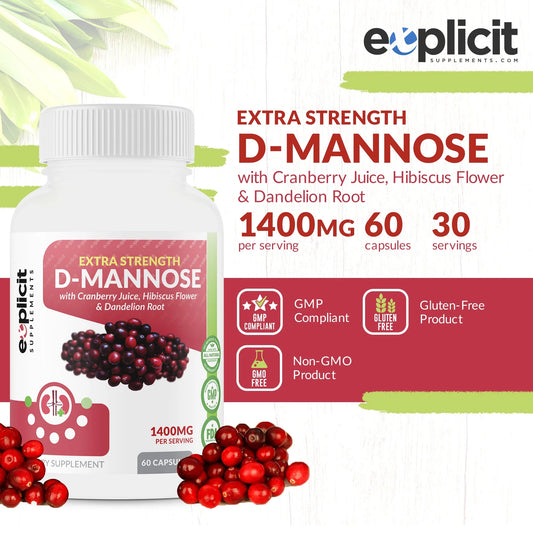 D-Mannose Capsules - Urinary Tract Cleanse & UTI Support - Fast Acting Digestive Cleanser - 1000Mg per Serving - - 60 Capsules