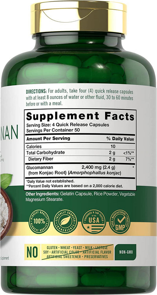 Glucomannan Capsules 2400Mg | 200 Count | Soluble Fiber Pills for Men and Women | by