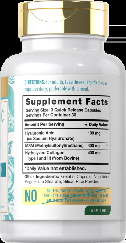 Hyaluronic Acid Supplement with Collagen 900Mg | 90 Capsules | with MSM | by
