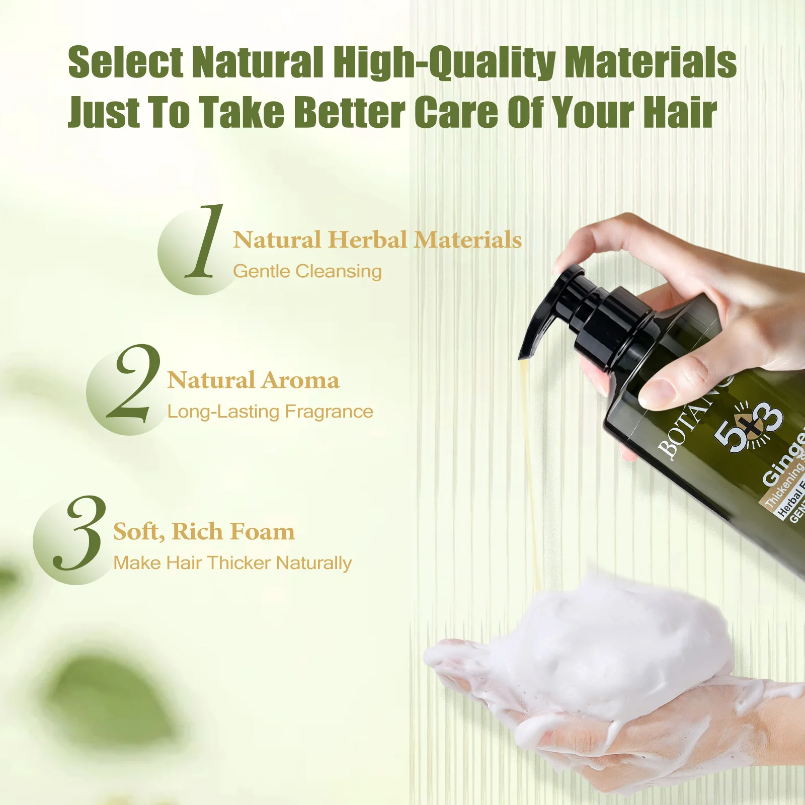 473Ml Thickening Shampoo with Herbal Essential Oil Ginger Scent for Hair Care No Silicone Oil Gentle