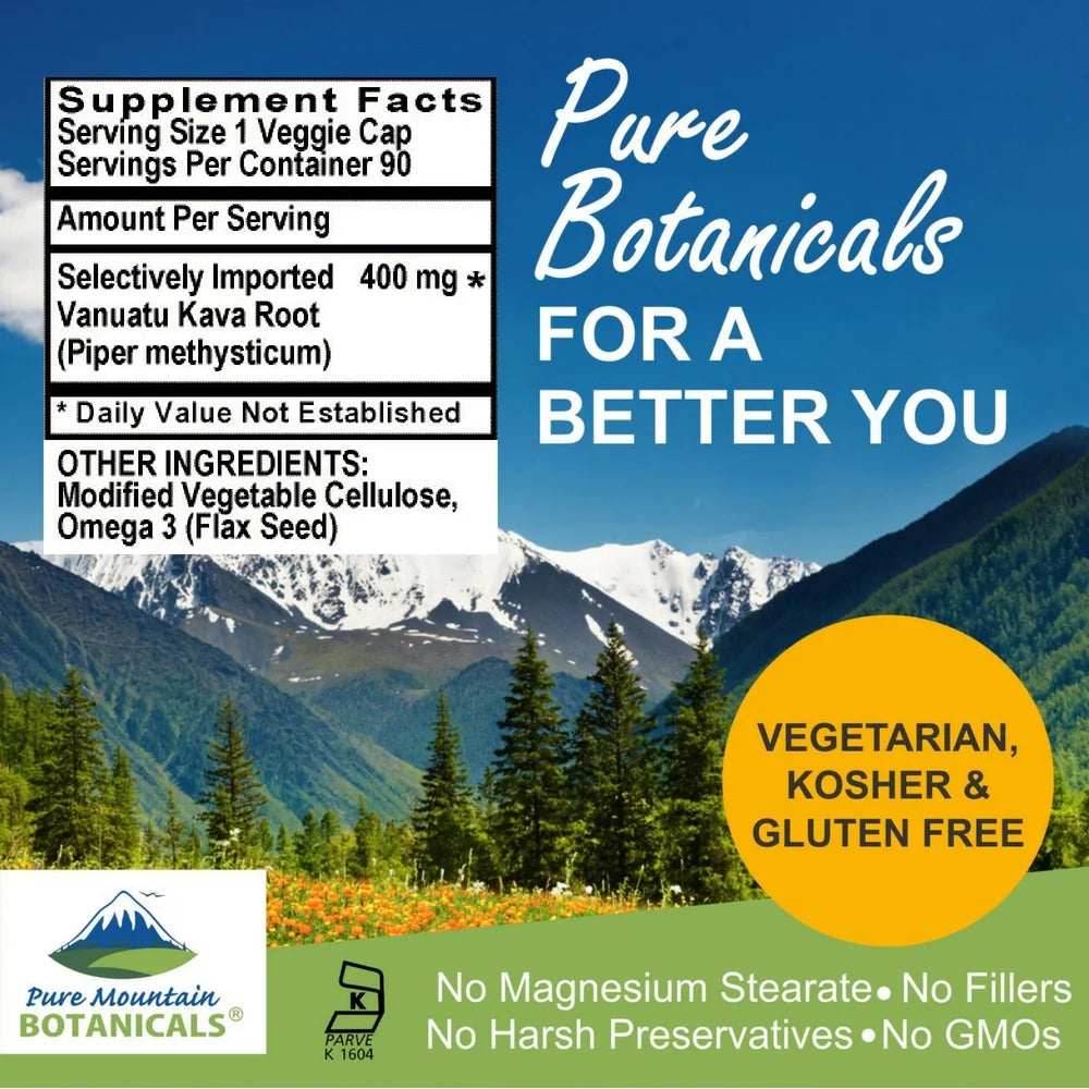 Kava Kava Capsules - 90 Kosher Vegan Caps with 400mg Wild Vanuatu Kava Root Extract Kava Kava Capsules- 90 Kosher Veggie Caps Now with 400mg Wild Harvested Kava Root Powder - by Pure Mountain Botanicals